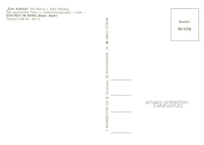 73244022 Reit Winkl Restaurant Zum Kuhstall Tanzlokal postalisch nicht gelaufen Erhaltung siehe scans [LiesaD40] KatCode: 11110009189139