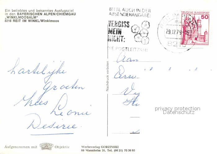 72872118 alte Postkarte Reit Winkl Skiparadies Winklmoosalm postalisch gelaufen Erhaltung siehe scans [LiesaD40] KatCode: 11110009189139