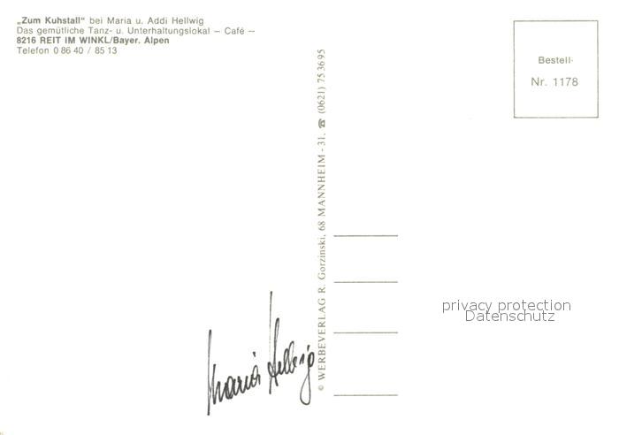 73645786 Reit Winkl Tanz- und Unterhaltungslokal Zum Kuhstall postalisch nicht gelaufen Erhaltung siehe scans [FriedD77] KatCode: 11110009189139