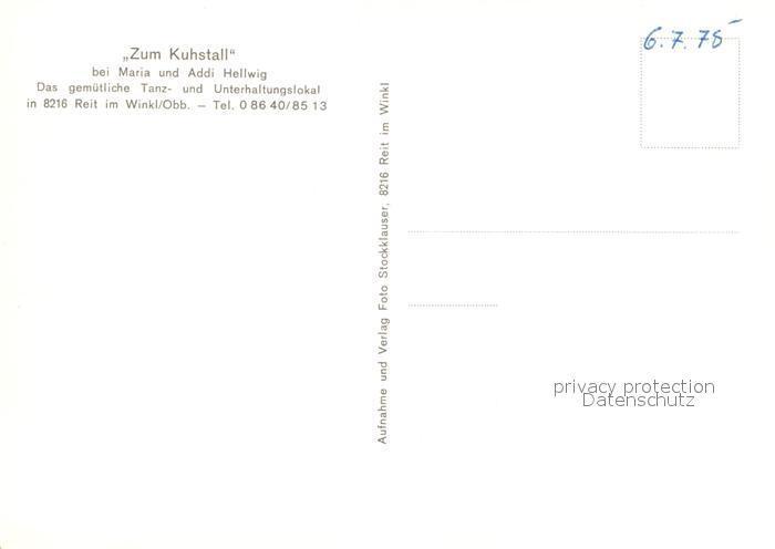 73010406 Reit Winkl Tanzlokal Zum Kuhstall mit Maria und Addi Hellwig Gaststube Bar postalisch nicht gelaufen Erhaltung siehe scans [WerneD78] KatCode: 11110009189139