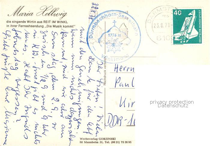 73010408 alte Postkarte Reit Winkl Tanzlokal Zum Kuhstall mit Maria und Addi Hellwig postalisch gelaufen Erhaltung siehe scans [WerneD78] KatCode: 11110009189139