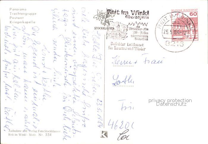 71927342 alte Postkarte Reit Winkl Trechtengruppe Postamt Kriegerkapelle postalisch gelaufen Erhaltung siehe scans KatCode: 11110009189139