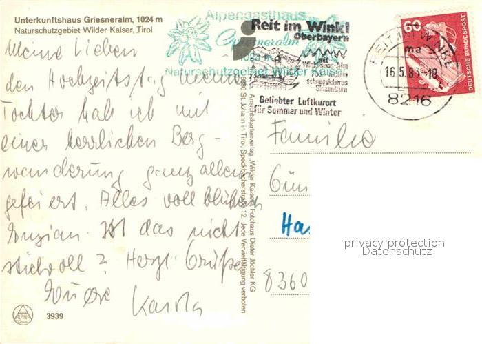 72620687 alte Postkarte Reit Winkl Unterkunfshaus Griesneralm Wilder-Kaiser postalisch gelaufen Erhaltung siehe scans [LiesaD40] KatCode: 11110009189139