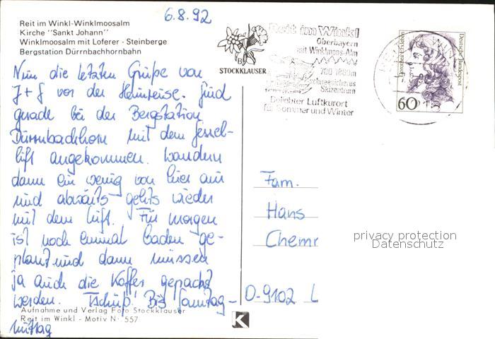 72567517 alte Postkarte Reit Winkl Winkelmoosalm Loferer Steinberge Duerrnbachhornbahn postalisch gelaufen Erhaltung siehe scans [LiesaD40] KatCode: 11110009189139