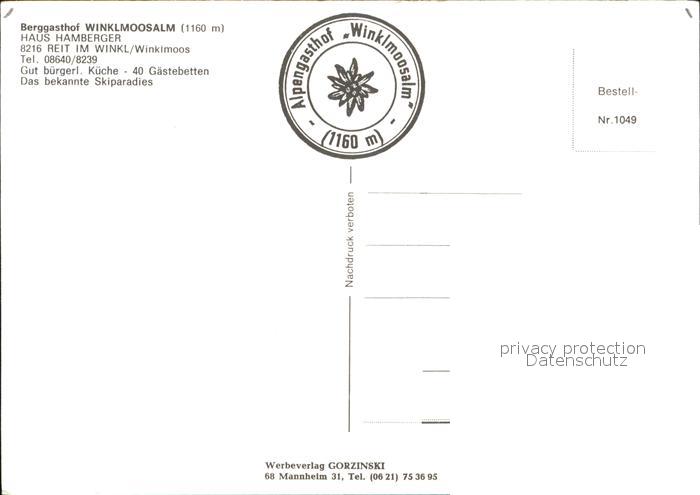 72567013 Reit Winkl Winklmoos-Alm postalisch nicht gelaufen Erhaltung siehe scans [LiesaD40] KatCode: 11110009189139