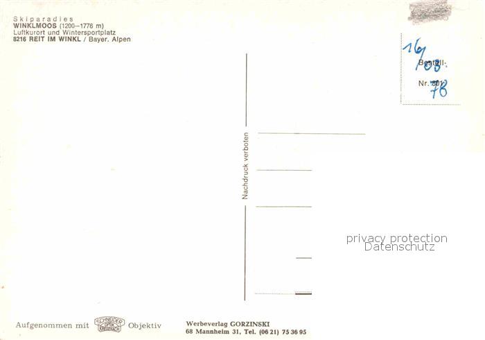 72841094 Reit Winkl Winklmoos postalisch nicht gelaufen Erhaltung siehe scans [AndreD76] KatCode: 11110009189139