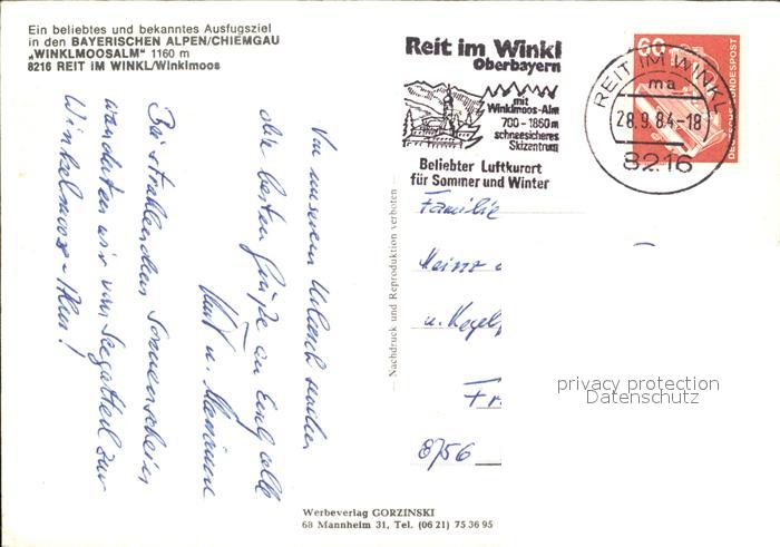72511588 alte Postkarte Reit Winkl winklmoosalm postalisch gelaufen Erhaltung siehe scans KatCode: 11110009189139