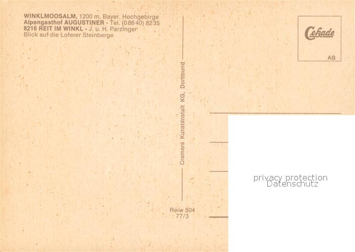 73653050 Reit Winkl Winklmoosalm Alpengasthof Augustiner postalisch nicht gelaufen Erhaltung siehe scans [WerneD78] KatCode: 11110009189139