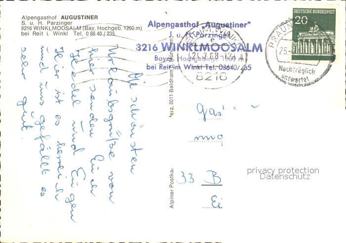 72156477 alte Postkarte Reit Winkl Winklmoosalm Alpengasthof Augustiner postalisch gelaufen Erhaltung siehe scans KatCode: 11110009189139