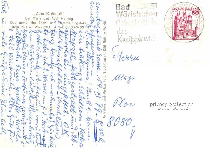 72855746 alte Postkarte Reit Winkl Zum Kuhstall postalisch gelaufen Erhaltung siehe scans [AndreD76] KatCode: 11110009189139