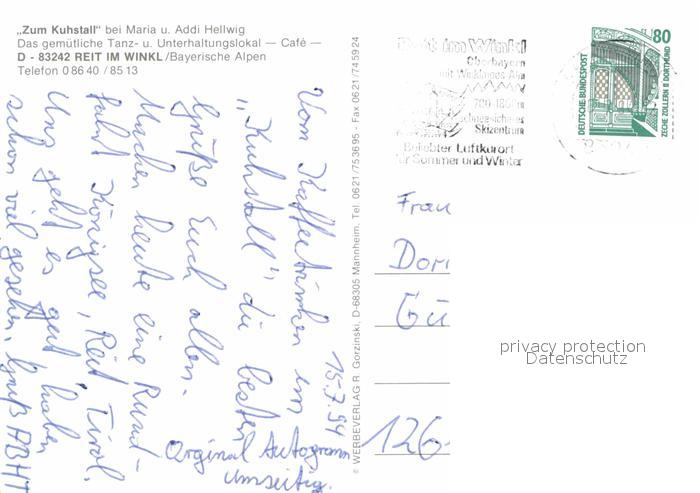 72840063 alte Postkarte Reit Winkl Zum Kuhstall bei Maria und Addi Hellwig Tanzlokal postalisch gelaufen Erhaltung siehe scans [LiesaD40] KatCode: 11110009189139
