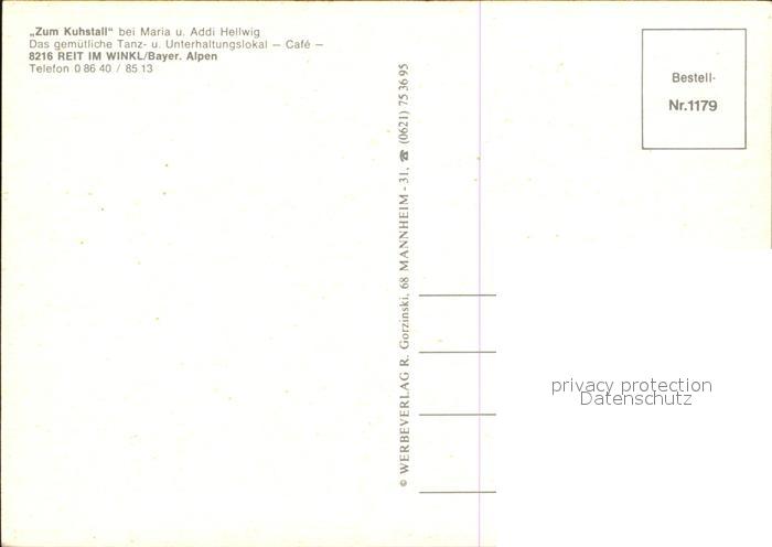 72568559 Reit Winkl Zum Kuhstall Maria Hellwig Lokal postalisch nicht gelaufen Erhaltung siehe scans [KathaD79] KatCode: 11110009189139