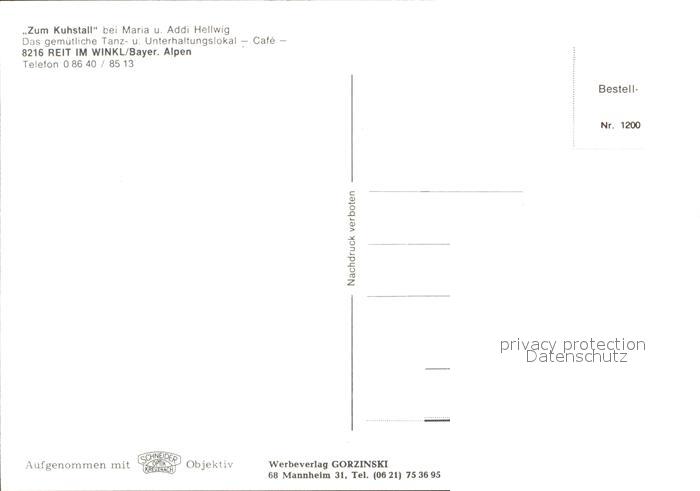 72565765 Reit Winkl Zum Kuhstall Maria und Addi Hellwig postalisch nicht gelaufen Erhaltung siehe scans [LiesaD40] KatCode: 11110009189139