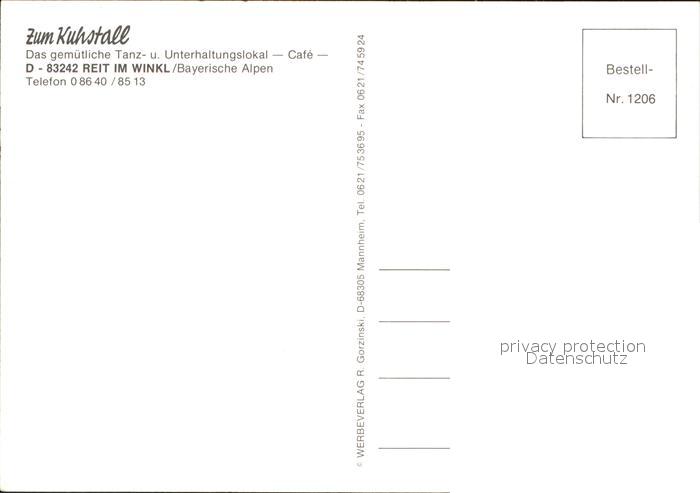 72061321 Reit Winkl Zum Kuhstall Tanzlokal Unterhaltungslokal Cafe postalisch nicht gelaufen Erhaltung siehe scans KatCode: 11110009189139