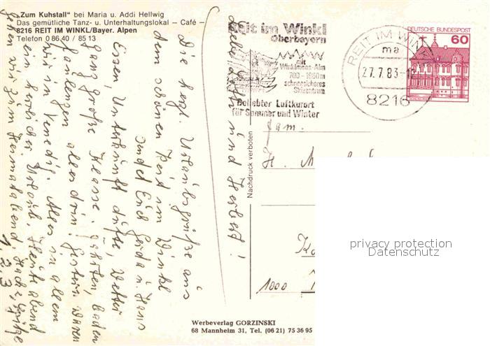 72823362 alte Postkarte Reit Winkl Zum Kuhstall Tanzlokal Unterhaltungslokal Cafe postalisch gelaufen Erhaltung siehe scans [FriedD77] KatCode: 11110009189139