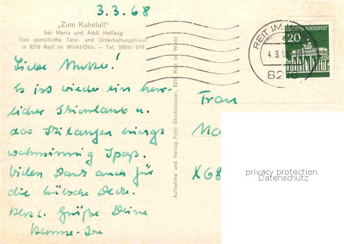 72707021 alte Postkarte Reit Winkl Zum Kuhstall Tanzlokal Unterhaltungslokal postalisch gelaufen Erhaltung siehe scans [FriedD77] KatCode: 11110009189139