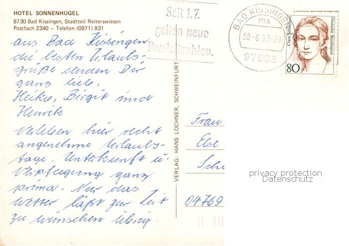 73835210 alte Postkarte Reiterswiesen Hotel Sonnenhuegel Wellenbad Tennis postalisch gelaufen Erhaltung siehe scans [FriedD77] KatCode: 11110009672114