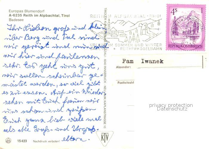 72761768 alte Postkarte Reith Alpbachtal Badesee postalisch gelaufen Erhaltung siehe scans [NatalD47] KatCode: 11390335070522