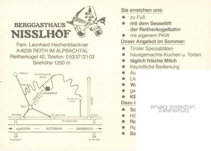 73319981 Reith Alpbachtal Berggasthaus Nisslhof Alpenpanoama postalisch nicht gelaufen Werbekarte (keine Postkarte) Erhaltung siehe scans [FriedD77] KatCode: 11390335070522