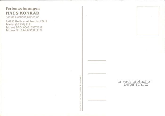 72470707 Reith Alpbachtal Ferienwohnungen Haus Konrad postalisch nicht gelaufen Erhaltung siehe scans KatCode: 11390335070522
