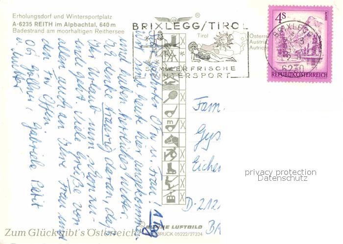 72883894 alte Postkarte Reith Alpbachtal Fliegeraufnahme Strand am Reithersee postalisch gelaufen Erhaltung siehe scans [LiesaD40] KatCode: 11390335070522