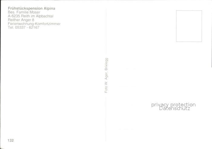 72354621 Reith Alpbachtal Fruehstueckspension Alpina postalisch nicht gelaufen Erhaltung siehe scans KatCode: 11390335070522