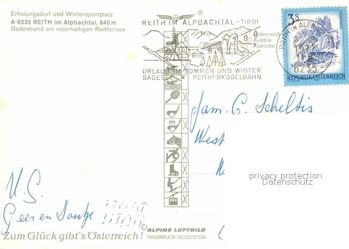 72823318 alte Postkarte Reith Alpbachtal mit Reithersee Alpenpanorama Fliegeraufnahme postalisch gelaufen Erhaltung siehe scans [FriedD77] KatCode: 11390335070522