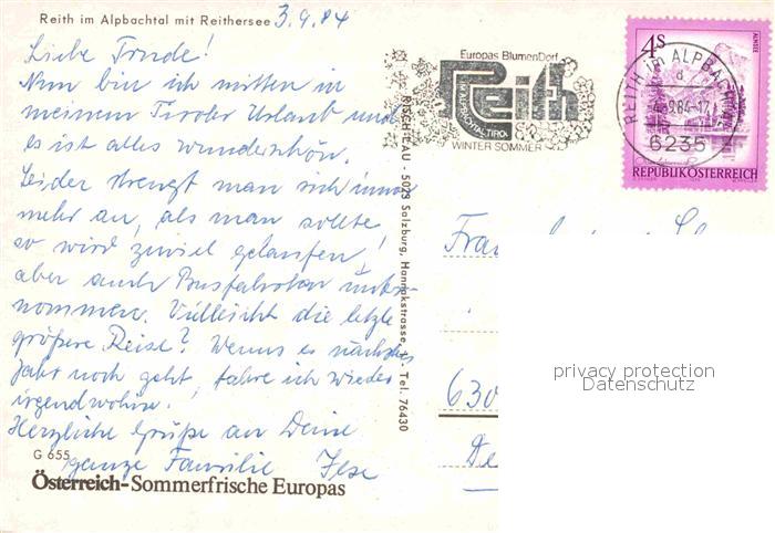 72772084 alte Postkarte Reith Alpbachtal mit Reithersee postalisch gelaufen Erhaltung siehe scans [LiesaD40] KatCode: 11390335070522