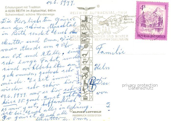 73246147 alte Postkarte Reith Alpbachtal Panorama postalisch gelaufen Erhaltung siehe scans [KathaD81] KatCode: 11390335070522