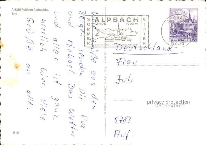 72436293 alte Postkarte Reith Alpbachtal Panorama postalisch gelaufen Erhaltung siehe scans KatCode: 11390335070522
