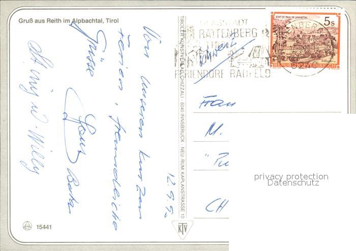 72532455 alte Postkarte Reith Alpbachtal Teilansicht postalisch gelaufen Erhaltung siehe scans [AndreD76 kt113box] KatCode: 11390335070522