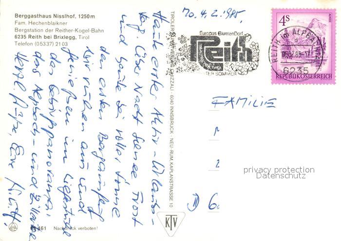 73324541 alte Postkarte Reith Brixlegg Berggasthaus Nisslhof postalisch gelaufen Erhaltung siehe scans [WerneD78] KatCode: 11390335070506