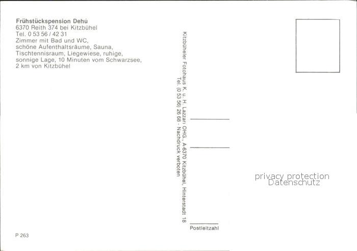 72257708 Reith Kitzbuehel Fruehstueckspension Dehu postalisch nicht gelaufen Erhaltung siehe scans KatCode: 11390335070414