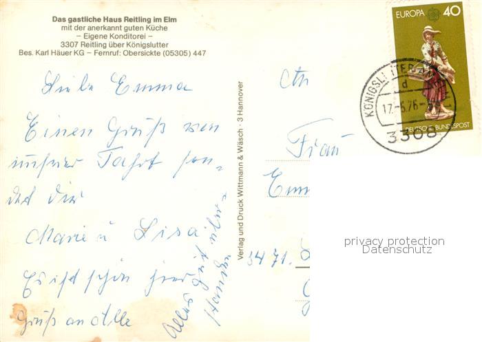 73724341 alte Postkarte Reitling Das gastliche Haus Reitling im Elm Aussenansicht m. Terrasse postalisch gelaufen Erhaltung siehe scans [LiesaD40] KatCode: 11110003154013