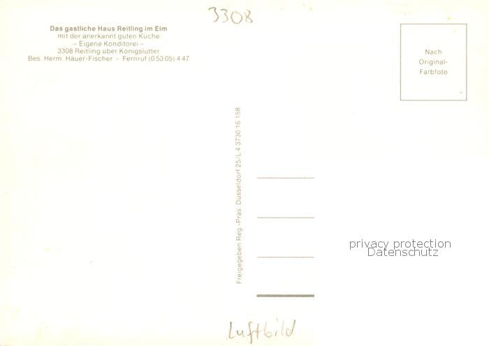 73864996 Reitling Haus Reitling im Elm Fliegeraufnahme postalisch nicht gelaufen Erhaltung siehe scans [WerneD78] KatCode: 11110003154013