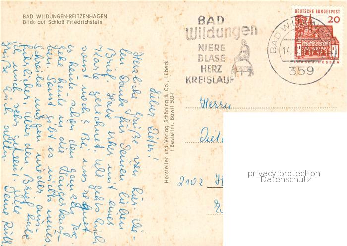 73813069 alte Postkarte Reitzenhagen Bad Wildungen Blick auf Schloss Friedrichstein postalisch gelaufen Erhaltung siehe scans [FriedD77] KatCode: 11110006635003