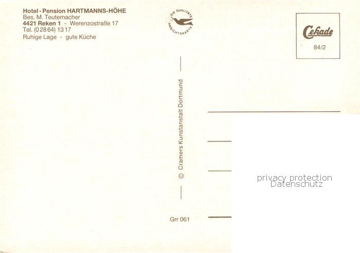 73777854 Reken Hotel Pension Hartmanns Hoehe Gastraeume Zimmer postalisch nicht gelaufen Erhaltung siehe scans [WerneD78] KatCode: 11110005554044