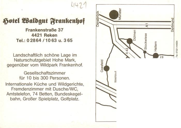 73894299 Reken Hotel Waldgut Frankenhof Gaestezimmer Gastraum postalisch nicht gelaufen Werbekarte (keine Postkarte) Erhaltung siehe scans [WerneD78] KatCode: 11110005554044