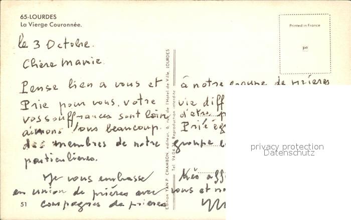 Religion Lourdes Vierge Couronnee postalisch nicht gelaufen Erhaltung siehe scans