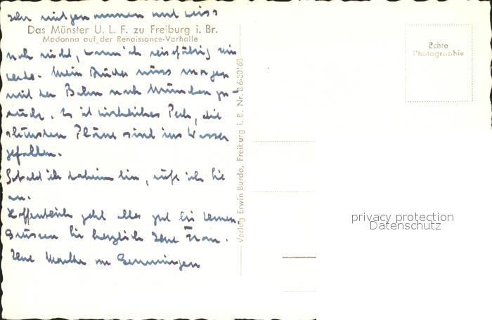 Religion Madonna Renaissance-Vorhalle Muenster Freiburg im Breisgau postalisch nicht gelaufen Erhaltung siehe scans