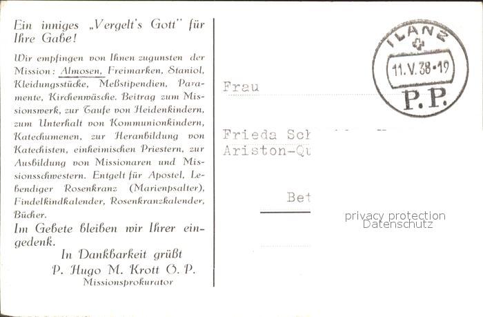 alte Postkarte Religion Prokuratur Rosenkranzmission Ilanz Nonne Waisenkinder postalisch gelaufen Erhaltung siehe scans