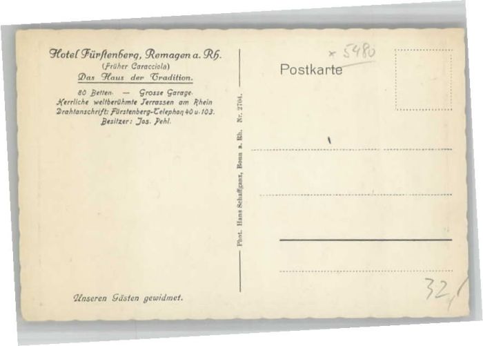 40651875 REMAGEN Rheinland-Pfalz Hotel Fuerstenberg postalisch nicht gelaufen Alte Ansichtskarte Postkarte Katcode 11110007131070