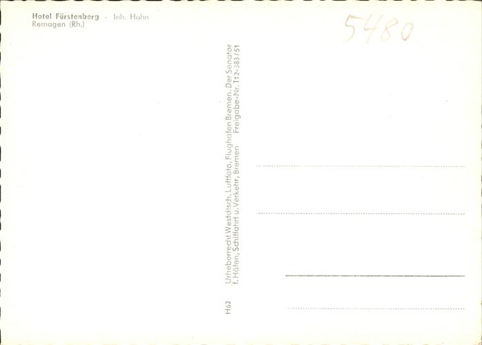 41094427 REMAGEN Rheinland-Pfalz Hotel Fuerstenberg Fliegeraufnahme postalisch nicht gelaufen Alte Ansichtskarte Postkarte Elvi Katcode 11110007131070