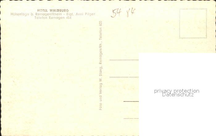 41575835 REMAGEN Rheinland-Pfalz Hotel Waldburg Terrasse Festhalle Kegelbahn postalisch nicht gelaufen Erhaltung siehe scans Alte Ansichtskarte Postkarte hz_F Katcode 11110007131070