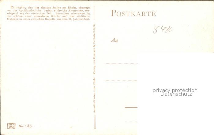 41576226 REMAGEN Rheinland-Pfalz Panorama mit Apollinariskirche Rhein Kuenstlerkarte postalisch nicht gelaufen Erhaltung siehe scans Alte Ansichtskarte Postkarte hz_F Katcode 11110007131070