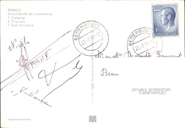 alte Postkarte Remich Camping Piscines Golf miniature postalisch gelaufen Erhaltung siehe scans
