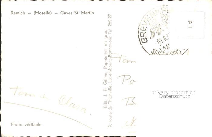 alte Postkarte Remich Caves St Martin postalisch gelaufen Erhaltung siehe scans