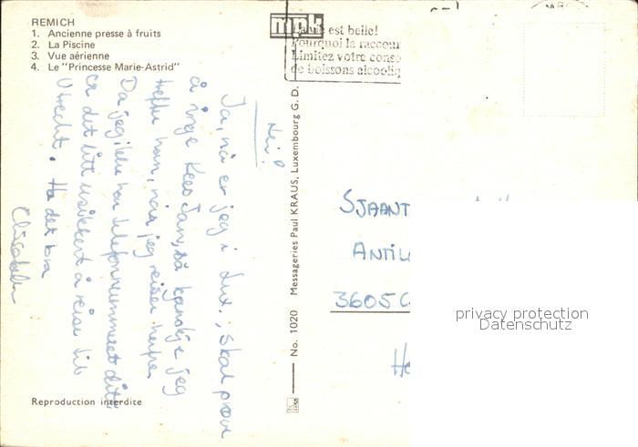 alte Postkarte Remich Fliegeraufnahme Freibad Personenschiff Princesse Marie Astrid postalisch gelaufen Erhaltung siehe scans