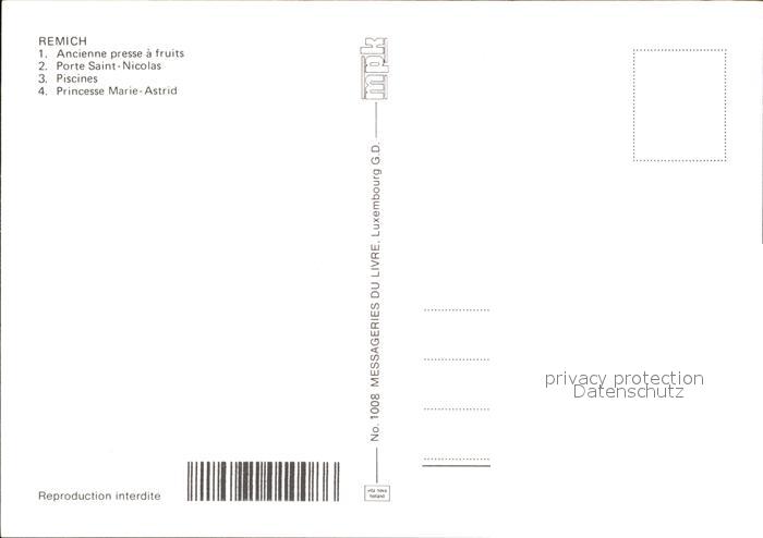 Remich Porte Saint Nicolas Ancienne Presse a fruits Piscines Princesse Marie Astrid postalisch nicht gelaufen Erhaltung siehe scans