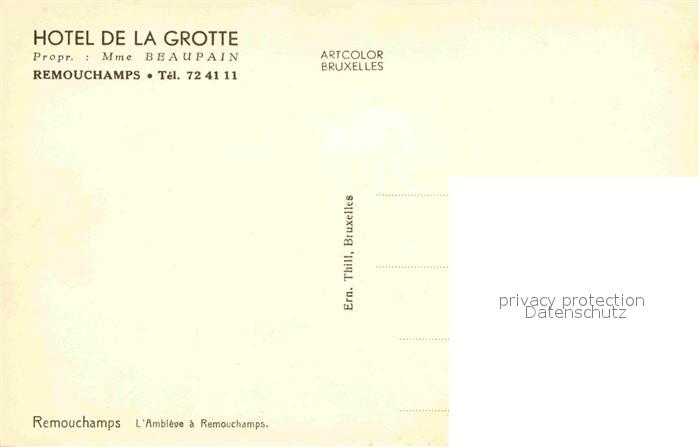 12869914 Remouchamps Liege Ambleve Hotel de la Grotte postalisch nicht gelaufen Erhaltung siehe scans [PaolaD17] KatCode: 11070062001431